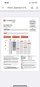 Date: 28 June 2024 Result: Pass at Grade C Overal Score: 130 CEFR Level: A2